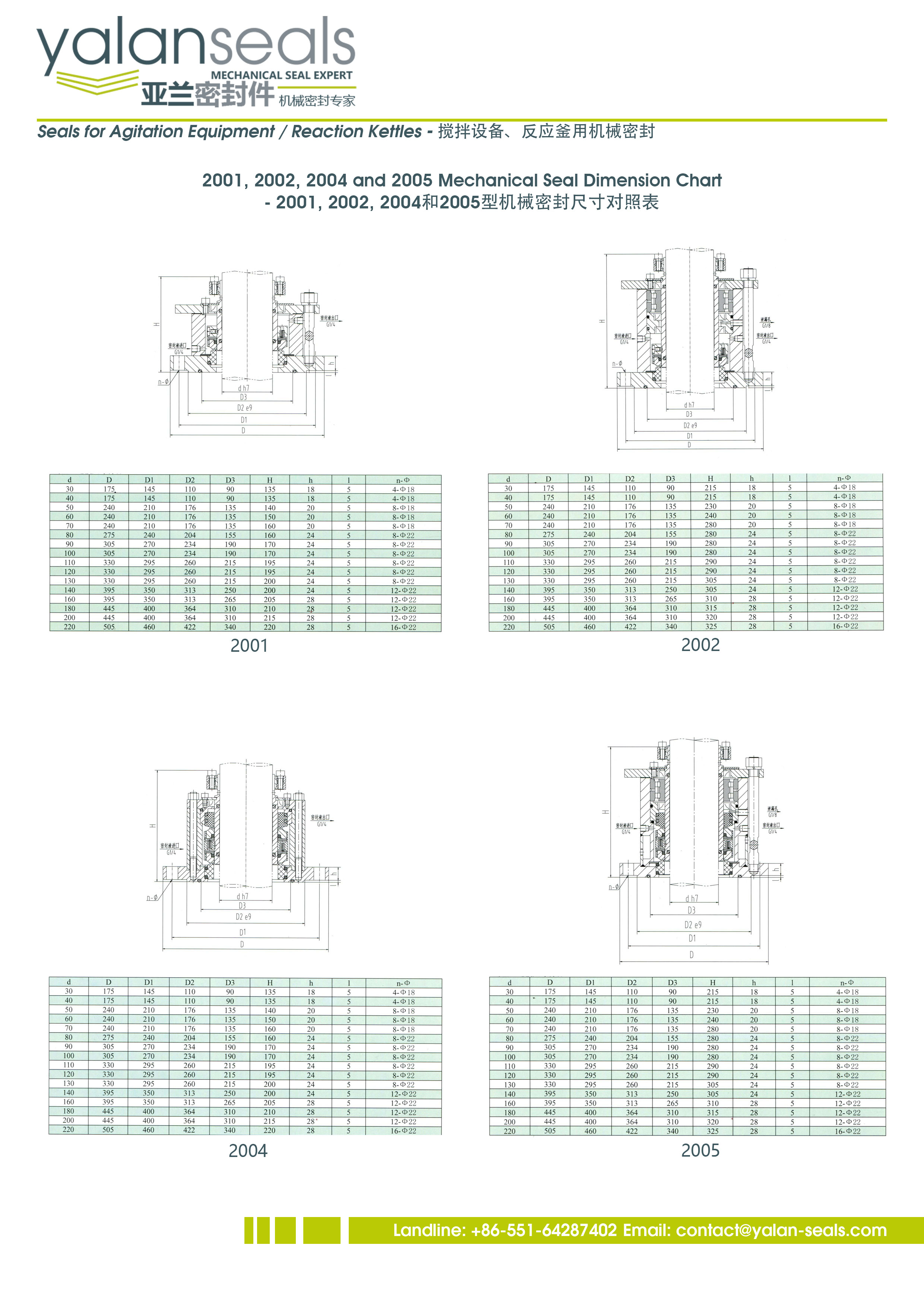 亞蘭2001,2002,2004,2005和2009機械密封件,用于立式攪拌設備