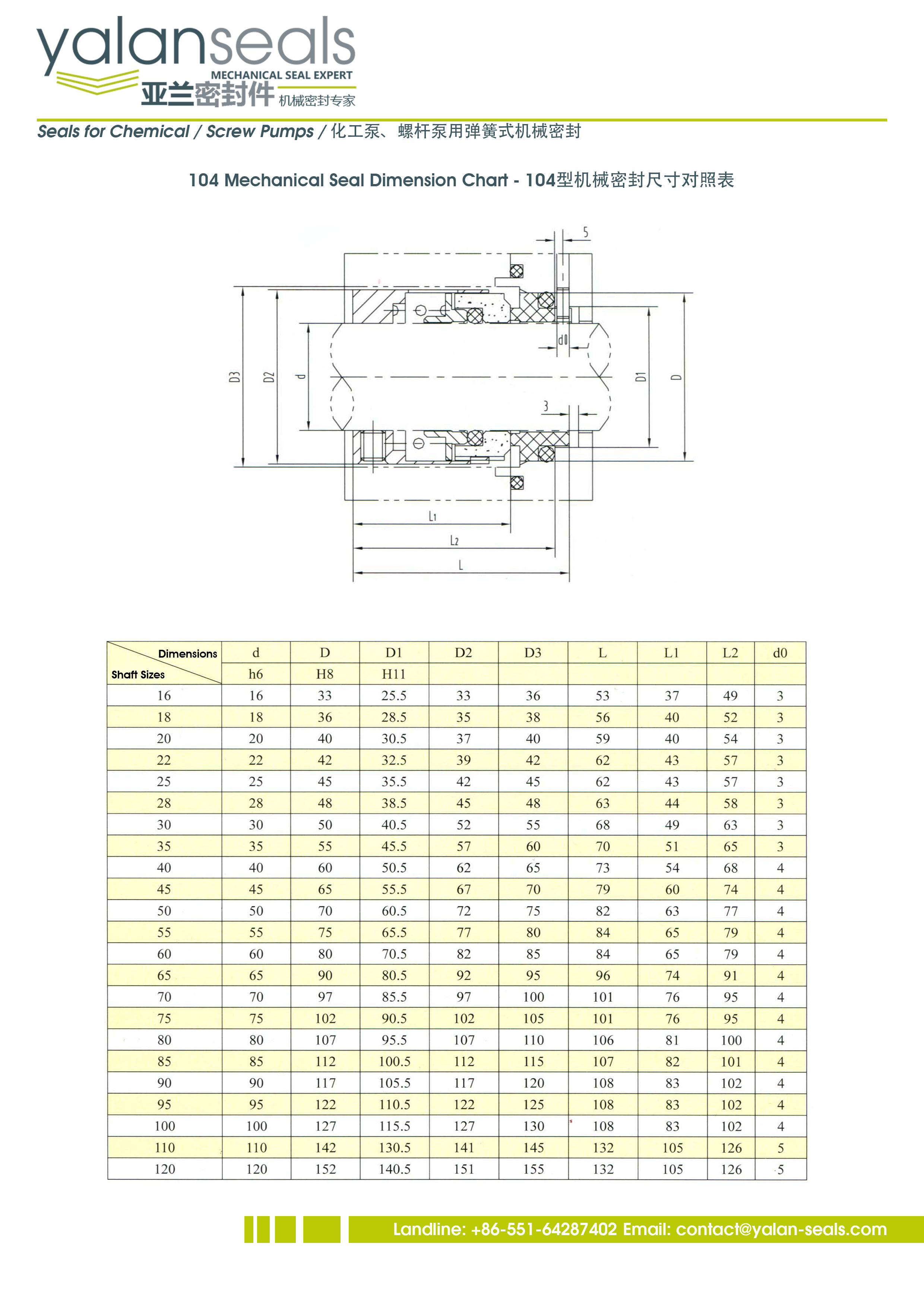 亞蘭104型機械密封件,用于化工離心泵、螺桿泵和污水泵等設備
