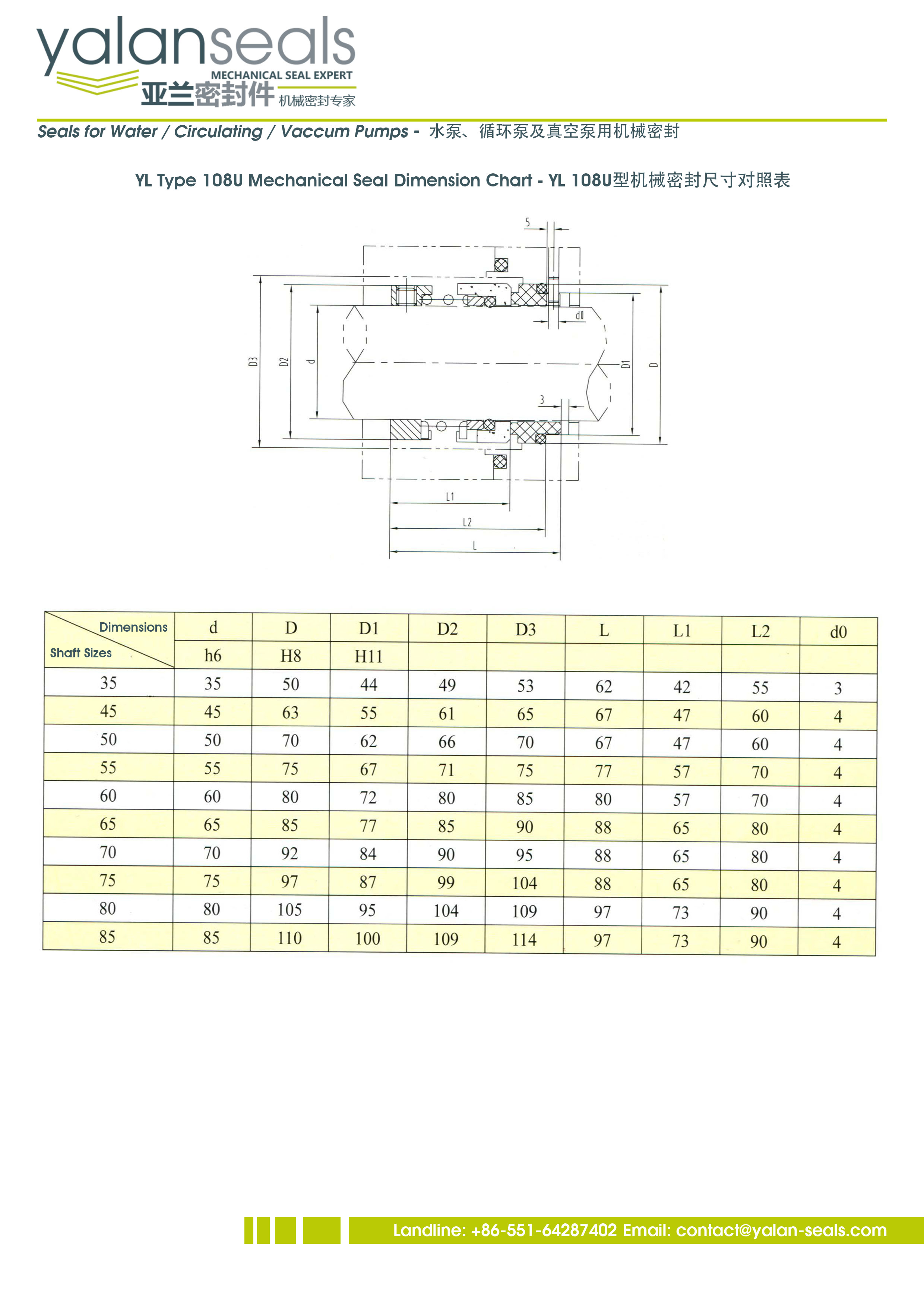 亞蘭108U型單彈簧機械密封件,用于水泵、循環泵和真空泵。