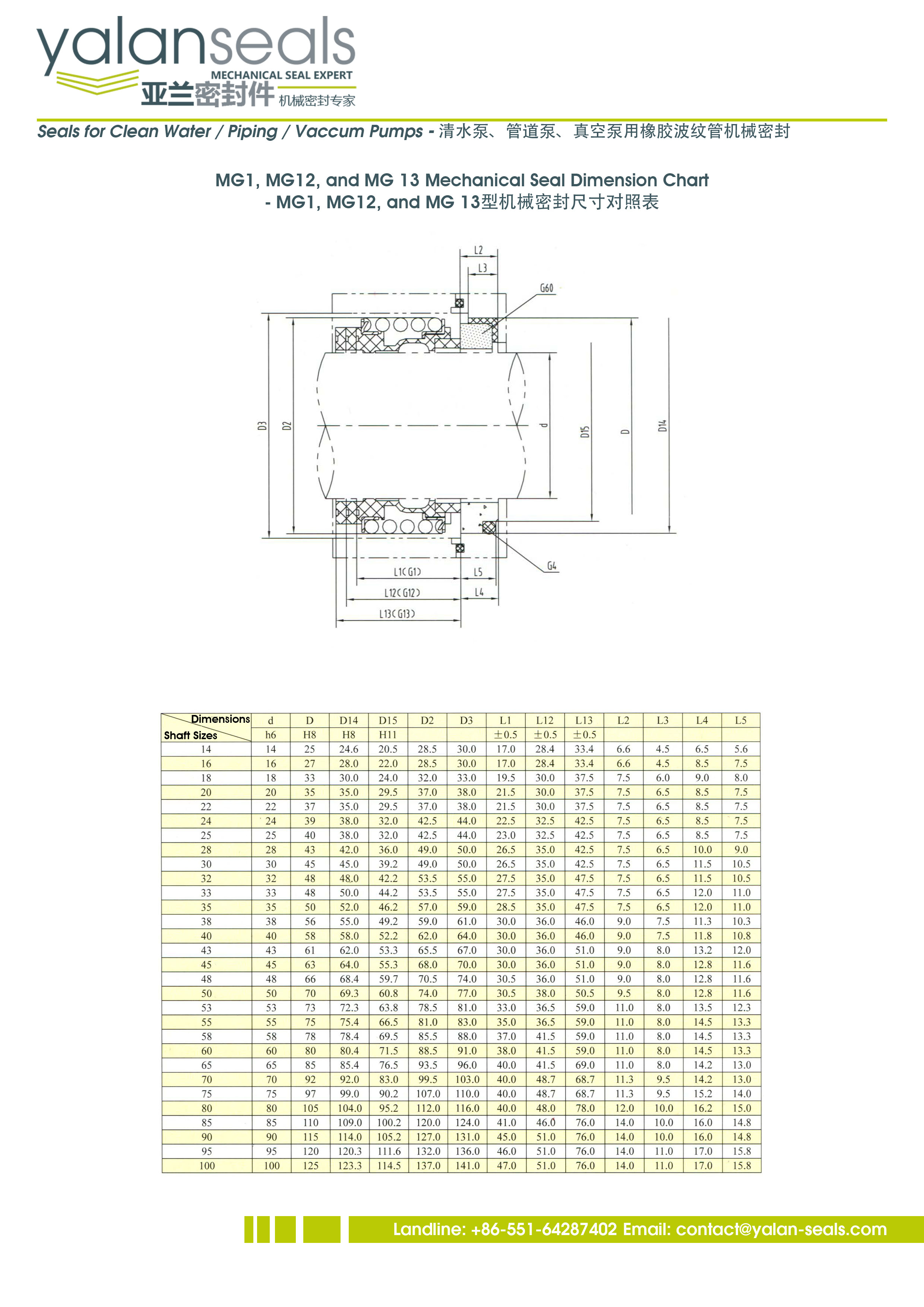 亞蘭MG12(G13)和U4801G12(13)機械密封件,用于水泵、潛水電機和管道泵